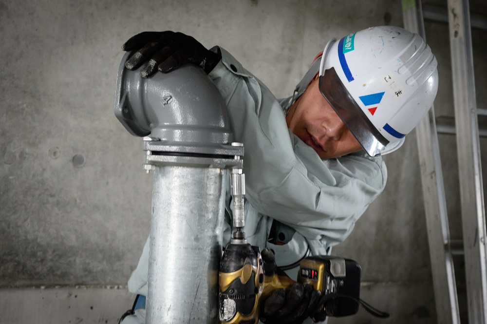 空調設備や給排水設備の配管工事を担当。